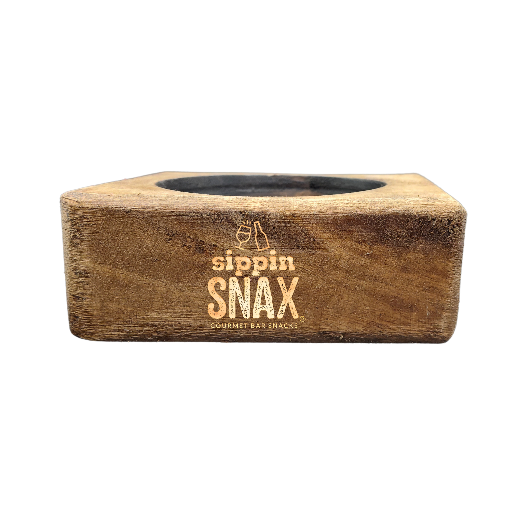 Wooden Snack Bowl with SIPPIN SNAX Logo: Elevate your snacking experience with a beautifully crafted wooden snack bowl featuring the iconic SIPPIN SNAX logo. Not only is it perfect for presenting your snacks, but it also adds a touch of rustic charm to any gathering.